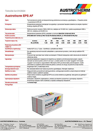 Tehnički list Austrotherm EPS AF PLUS (BiH)