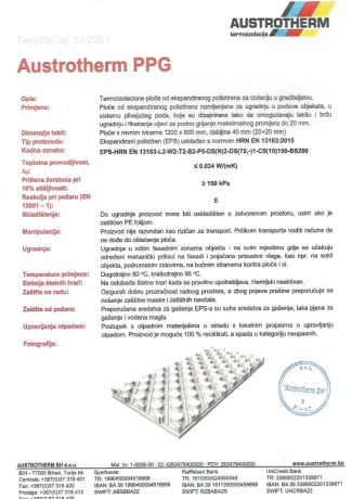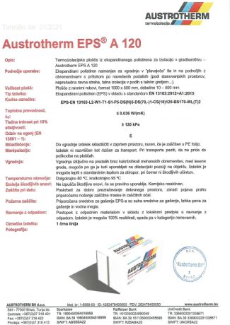 Tehnički list Austrotherm EPS A 120 (BiH)
